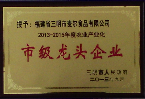 2013年10月15日,我司榮獲2013—2015年度農(nóng)業(yè)產(chǎn)業(yè)化“市級(jí)龍頭企業(yè)”稱號(hào),這是我司連續(xù)第3次榮獲此項(xiàng)殊榮。